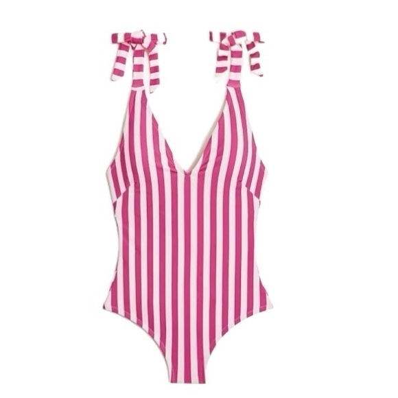 NWT! J. Crew Wild Berry White Striped Tie-Shoulder One-Piece Swimsuit. Size 3X