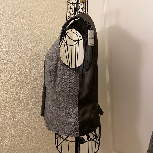 Vintage NWT J. Crew Women Brown Herringbone Tweed Vest Skirt Suit Set Size Small & 0