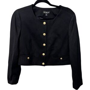 Elevate your style with this chic J. Crew women's jacket. Featuring a sleek black design and elegant gold buttons, it's perfect for any occasion.