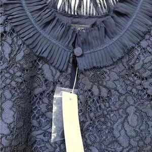 *NWT* J. Crew Women’s M Navy Blue Floral Lace Scalloped Hem Sleeveless Blouse