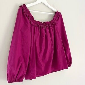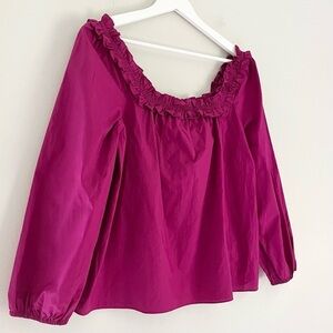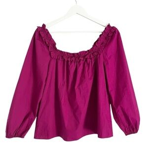 J. Crew women’s penny ruffle peasant top in a magenta pink color. Size small.