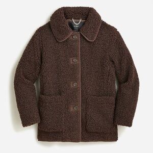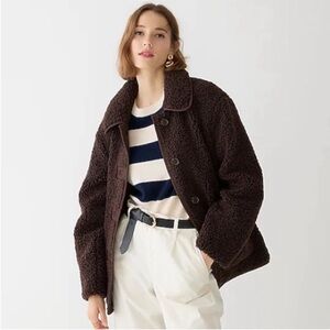NWT J. Crew Womens Teddy Sherpa Jacket Chocolate Brown Button Front, Size Medium