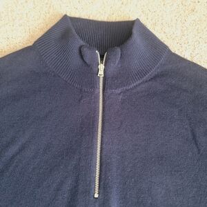 navy blue quarter zip Sweater in a Merino wool-blend fabric