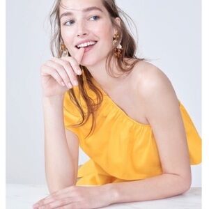 A one-shoulder yellow top in an easy cotton poplin means your day just got waaaay cuter.