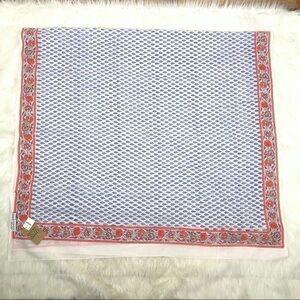 GORGEOUS brand new with tags ZZ J. Crew sarong / scarf! 100% cotton. Made in India. White with blue floral pattern and neon coral border.
