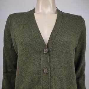 NWT J. Crew dark green wool cotton blend V-Neck cardigan sweater ladies Small