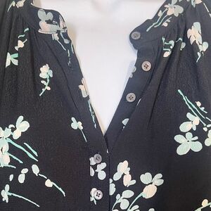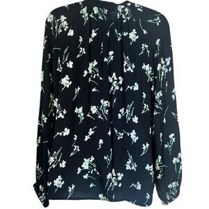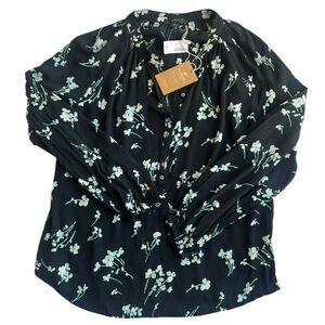 NWT J. Crew Black Floral Long-Sleeve Drapey Popover Women's Shirt Blouse size S