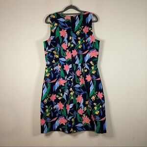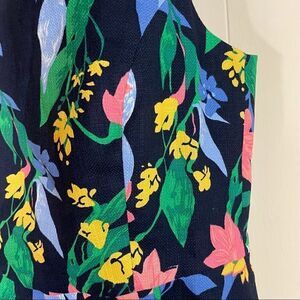 This cute dress is brand new with tags attached. It is navy with pretty spring flowers all over. It falls about knee length. It’s a prefect dress for a garden party or even for the office! It is lined.