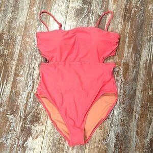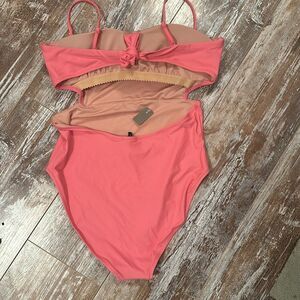NWT J. Crew Vibrant Coral One Piece Swimsuit removable Straps & Stylish Cut-outs
