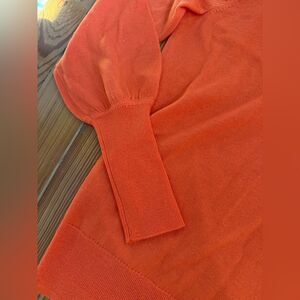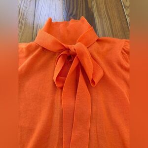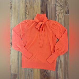 New with tags. Orange lightweight sweater. Mock turtleneck with tie. Puffed sleeves. Size XXS