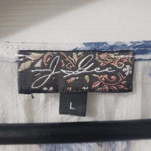 NWT J GLEE Boho Dress Blue/White Floral Knee Length Size L