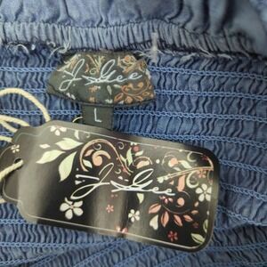 NWT J. Gee Blue Polka Dot Smocked Tie Strap Tiered Ruffle Dress Size L