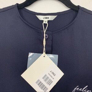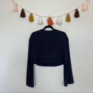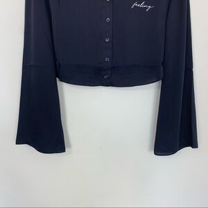 NWT J. Ing Navy Blue Feeling Embroidered Crop Top Size Medium