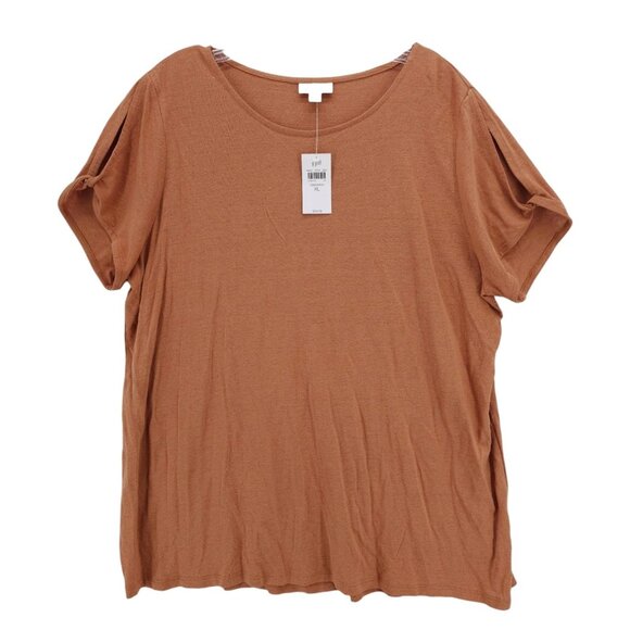 NWT J JILL Love Linen Blend Tee Cinnamon Brown Sleeve Cutout Size XL