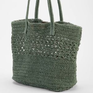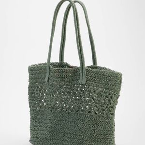 NWT J JILL Sage Green Crocheted Large Jute Tote