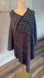 Stylish poncho with a geometric pattern in shades of blue and purple. Has Missoni vibes to me. Perfect for fall layering with denim or a great gift idea for the holidays!