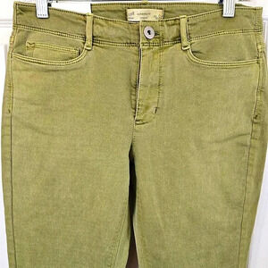 NWT Super comfortable capri jean made with 98% cotton and 2% spandex. Light amount of stretch. Button closure. Raw edge hem. Light olive green color.