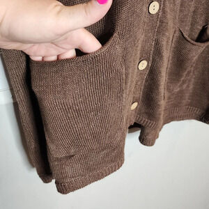 NWT J. Jill Linen Rayon Brown Short Sleeve Button Knit Cardigan Pockets Large