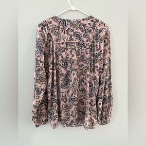 NWT J. Jill Long Sleeve V-neck Blouse Floral Paisley Pink Blue Boho Size M
