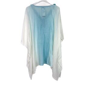 NWT J. Jill Ombre Poncho With Neckline Trim In Light Blue White Plus Size XL-3X