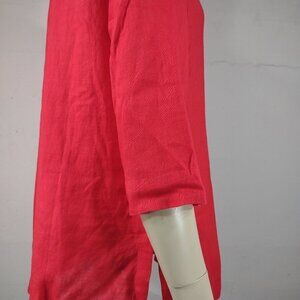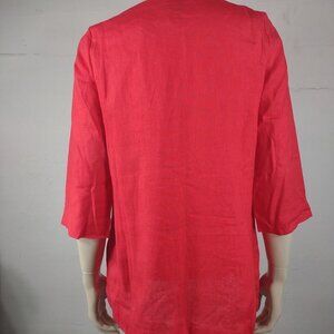 NWT J. Jill Pimento red 100% Linen 3/4 sleeve Y-Neck shirt blouse ladies XS
