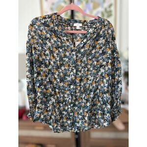 NWT J. Jill Smocked Relaxed Rayon Blouse Navy Blue Sm Wildflowers Womens Large