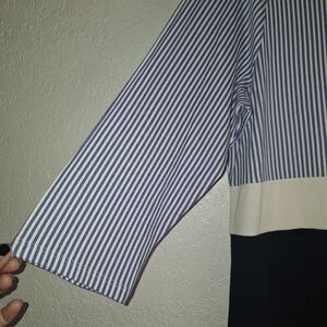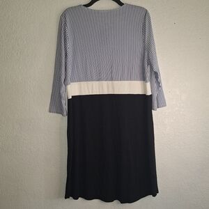 NWT J Jill Stripe Color Block Knit Tunic Dress Shift Blue White Black Large.
