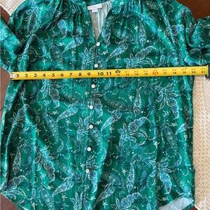 Never worn; Too big and missed return window. Chic paisley design with button-down front. Lightweight and stylish for versatile wear.