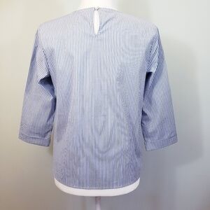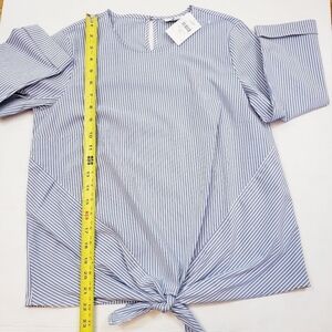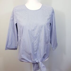 NWT J. Jill Tie Front Knot Blouse Top Blue & White Stripes Shirt