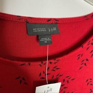 NWT J. Jill Wearever Collection Red Leaf Print Long Sleeve Dress Sz Medium. Very stretchy and soft fabric.