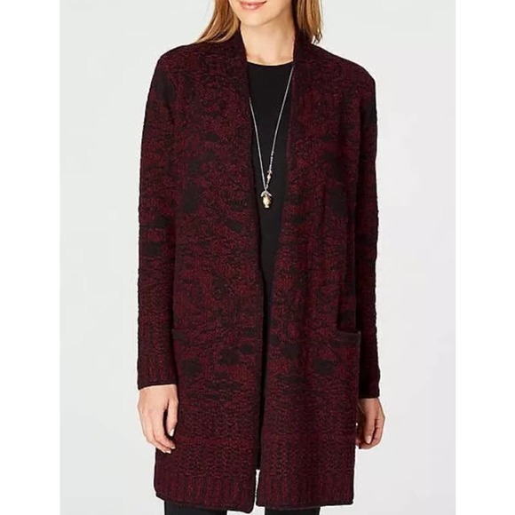 NWT J. Jill Women’s Long Sleeve Floral Pocket Cardigan Sweater Size XS Red Black