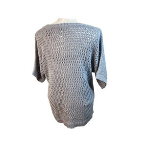 J. Jill Womens Pullover Sweater Gray Open Knit Crochet Batwing Dolman S New