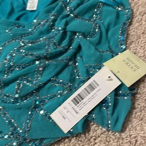 NWT J Kara Women's C-Neck with 3/4 Sleeve Beaded Long Dress Aqua Color Sz 8