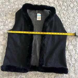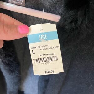 NWT J. McLaughlin Alina Cashmere Fur Trim Luxury Open Vest, Black and Gray, L