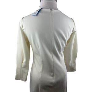 NWT J McLaughlin Sheath Dress Pleated Ponte 3/4 Sleeve Ivory Large Modest Mature