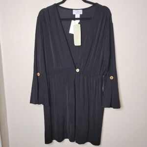 NWT J Valdi Plunge Bell-Sleeve Swim Cover-Up Dress XL Beach To Brunch