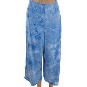 New with tags J for Justify tie-dye jumpsuit in a soft, stretchy cloud blue wash. Adjustable straps plus a ruched draw-cord bust let you dial in the fit, while a flirty hourglass cut-out adds that on-trend peek of skin. Smocked back keeps it comfy; wide-leg culotte hem keeps it breezy for festivals, beach vacations, concerts or brunch.