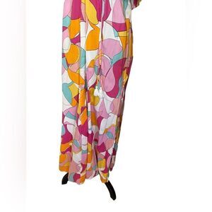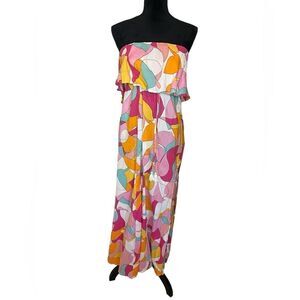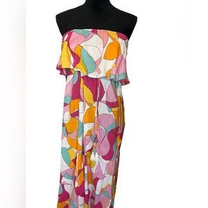 NWT JAPNA STRAPLESS MAXI DRESS FLUTTER TOP GEOMETRIC SUMMER PRINT WOMEN XS