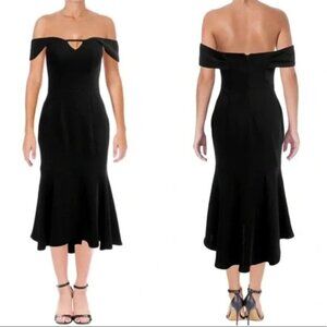 NWT JARLO LONDON Blithe Black Flounce Hi Low Hem Midi Dress Gown SZ 4