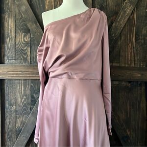 NWT JASAMBAC Satin Elegant One Shoulder Ruched Long Sleeve Wedding Dress