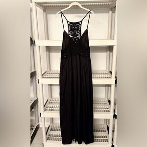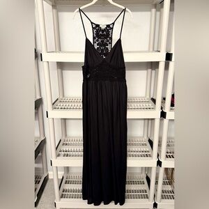 NWT JASON WU Black Linen Maxi Dress Crochet Size L
