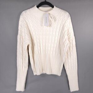 NWT JASON WU Cable Knit Rib Hem & Cuffs Pullover Sweater Ivory JW453000 Size LARGE