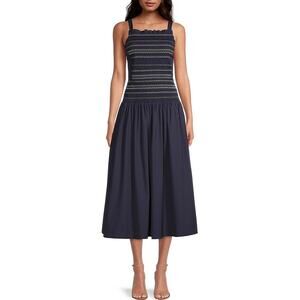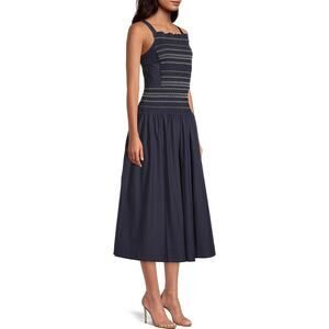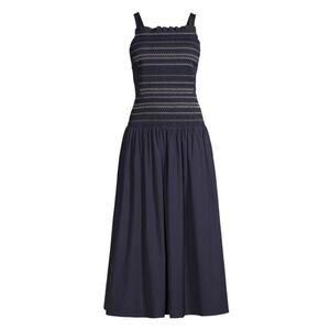 NWT JASON WU Smocked Bodice Drop Waist Sundress in Navy Size 6