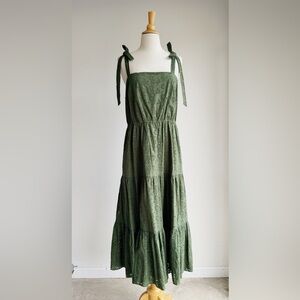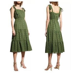 NWT JASON WU Tiered Eyelet Midi Dress in Guac | 12