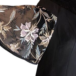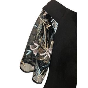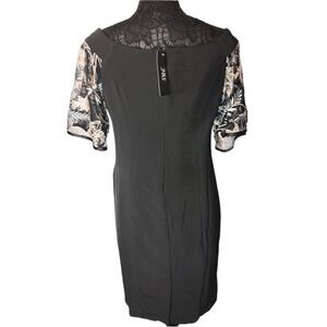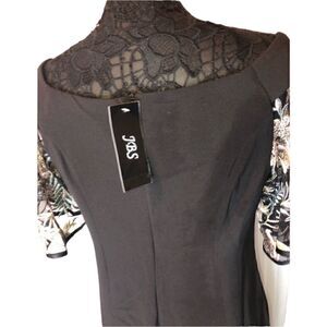 NWT “JBS” Black Women’s Dress Mid Length Embroidered Short See Through Sleeves