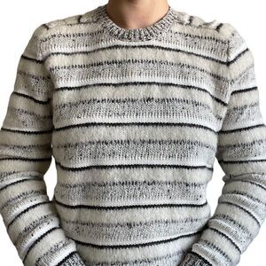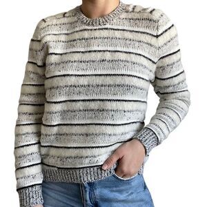 NWT J Brand Womens Black White Striped Wool Blend Crewneck Sweater Sz M