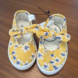 NWT Thereabouts Memory Foam Mary Jane Style Shoe Size 5. Memory foam insole with Velcro closure. Yellow floral print with bow detail. There is no box (see photos).