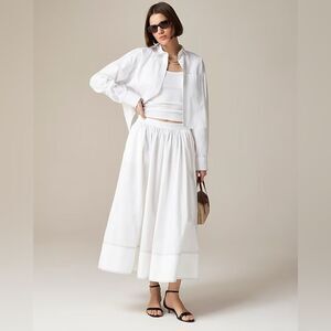 NWT J CREW Contrast-stitch midi skirt in cotton poplin in white