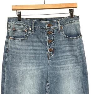 Brand new with tags! These J.Crew high-rise wide-leg jeans feature a flattering 11.5” rise, exposed button fly, and a classic medium wash. Made with 99% cotton and 1% Lycra for just the right amount of stretch.