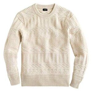 NWT J.CREW Men's Cream Cotton Sweater in Combination Guernsey Stitch Sz M